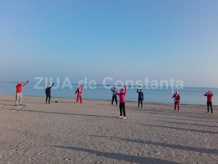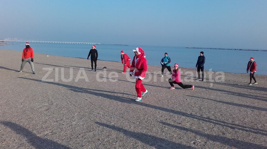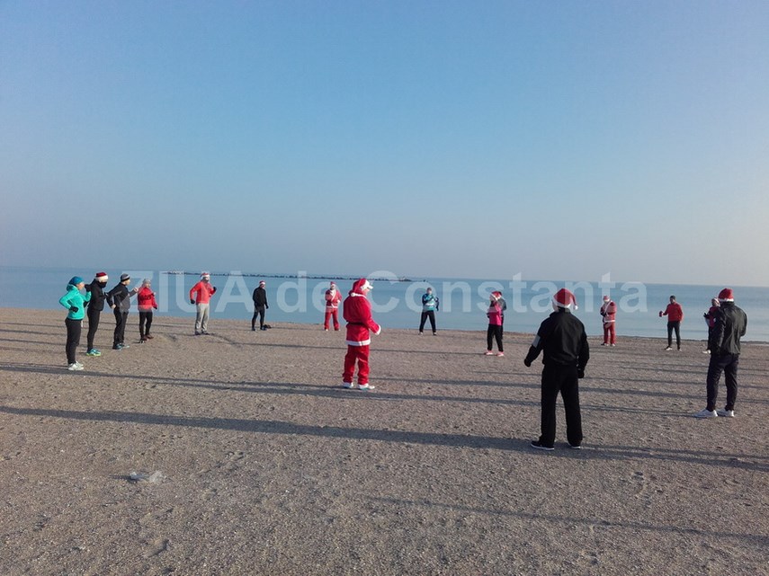 Selecţie pentru reni, la Santa Run 2016: Moş Crăciun s-a antrenat pe plaja de la Mamaia, alături de prietenii