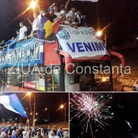 Echipa a facut turul de onoare al stadionului, in aplauzele spectatorilor, iar promovarea a fost udata din belsug cu sampanie.