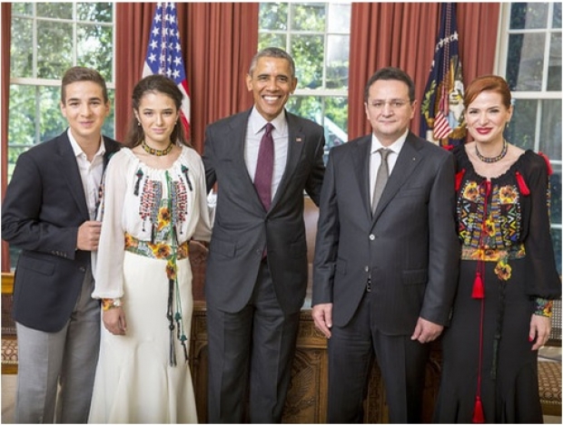 La ceremonia de la Casa Albă, ambasadorul George Cristian Maior a fost însoțit de soția sa și cei doi copii.