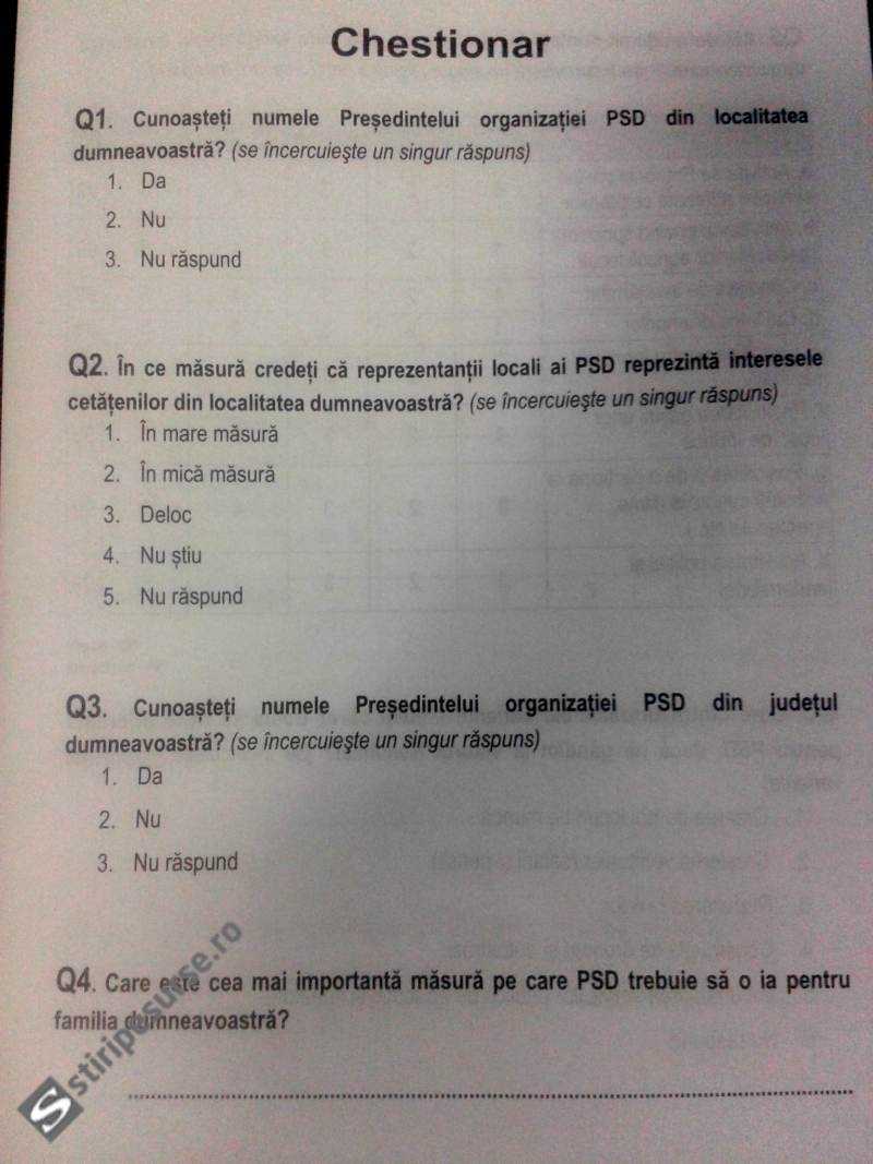 Stiripesurse.ro Ce conține chestionarul PSD pentru membrii săi / DOCUMENT