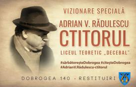 Iată că Instituţia Prefectului - Judeţul Constanţa se alătură cu bucurie proiectului iniţiat şi finanţat de cotidianul ZIUA de Constanţa de a celebra, cu prilejul Zilei Dobrogei şi în an centenar, personalitatea istoricului Adrian V. Rădulescu şi va prezenta marţi, 6 noiembrie, de la ora 14, în sala „Remus Opreanu“, documentarul omagial.