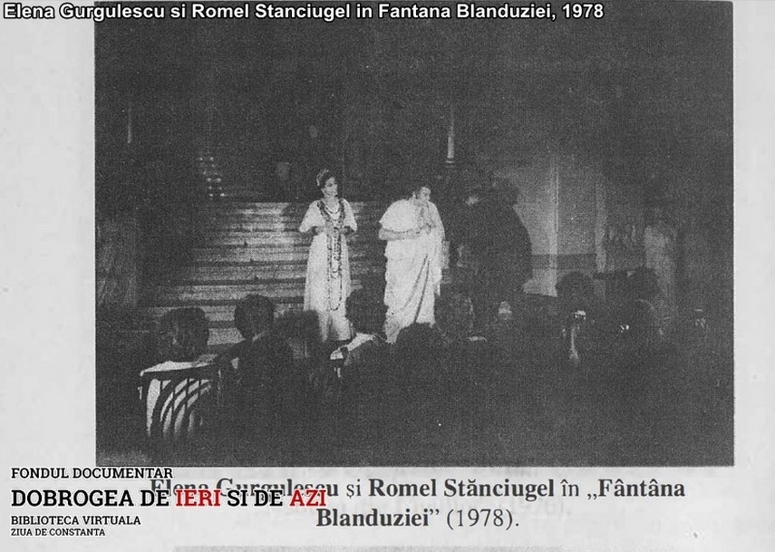 Chiar dacă nu am analizat toate montările, ele mi-au rămas în minte. Nu voi uita niciodată participarea actorilor de la malul mării în 1978, la acel unic Festival al Teatrului Antic, cu «Fântâna Blanduziei» de Alecsandri (n.r. vezi foto), jucată la Muzeul de Arheologie, după cum nici «Oedip»-ul cu Vasile Cojocaru, în regia lui Andrei Mihalache (n.r. vezi foto), pe malul lacului Sutghiol din Mamaia. Am văzut un interesant şi incitant spectacol Ghelderode, în regia lui Gheorghe Jora, un Iancu Lucian cuceritor, plin de energie debordantă într-o comedie de Goldoni, şi am fost martoră la debutul accidental ca actor al lui Alexa Visarion în «Pescăruşul» (n.r. vezi foto), când a intrat în Trigorin pentru a salva spectacolul.