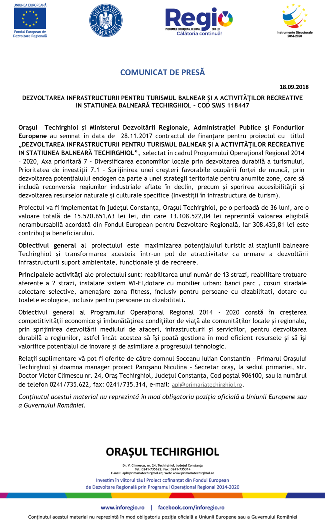 Dezvoltarea infrastructurii pentru turismul balnear şi a activităţilor recreative in statiunea balneară Techirghiol – cod smis 118447