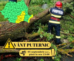 nu atingeți firele căzute la pământ.Reamintim faptul că, în condiții de vânt puternic, folosirea focului deschis în gospodării sau arderea vegetației uscate sunt foarte periculoase, fiind și interzise. Vântul poate propaga focul, într-un timp foarte scurt, la clădiri, depozite sau chiar la păduri.