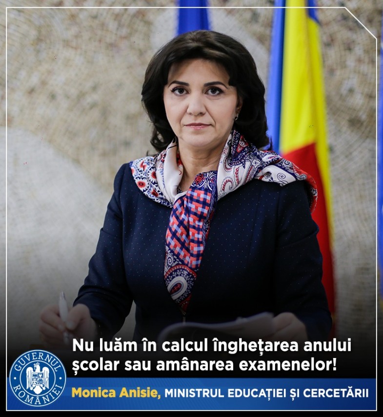 „Vreau să îi asigur pe elevi, studenți, profesori și părinți că, la acest moment, nu luăm în calcul înghețarea anului școlar sau amânarea examenelor cu un an! Specialiștii din Ministerul Educației și Cercetării (MEC) lucrează la mai multe scenarii, privind cu atenție și la ceea ce se întâmplă în cadrul sistemelor de educație din statele Uniunii Europene.